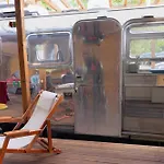 Featuring the garden view, Luxury Vintage Airstream Rv/Caravan Retro Charm Meets Comfort has a terrace as well as a sofa and a writing desk. An air conditioner are provided for a comfortable stay. This accommodation comes with a bathroom with a separate toilet and a shower. Towels are also available.